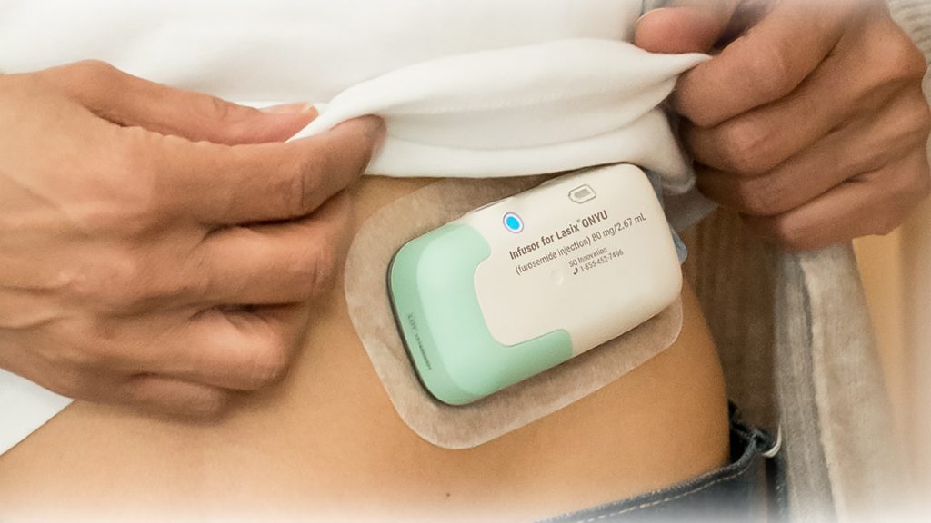 Lasix® ONYU is a prescription drug-device combination that treats edema in adult patients with chronic heart failure. It enables treatment outside the healthcare setting as instructed by a healthcare provider.